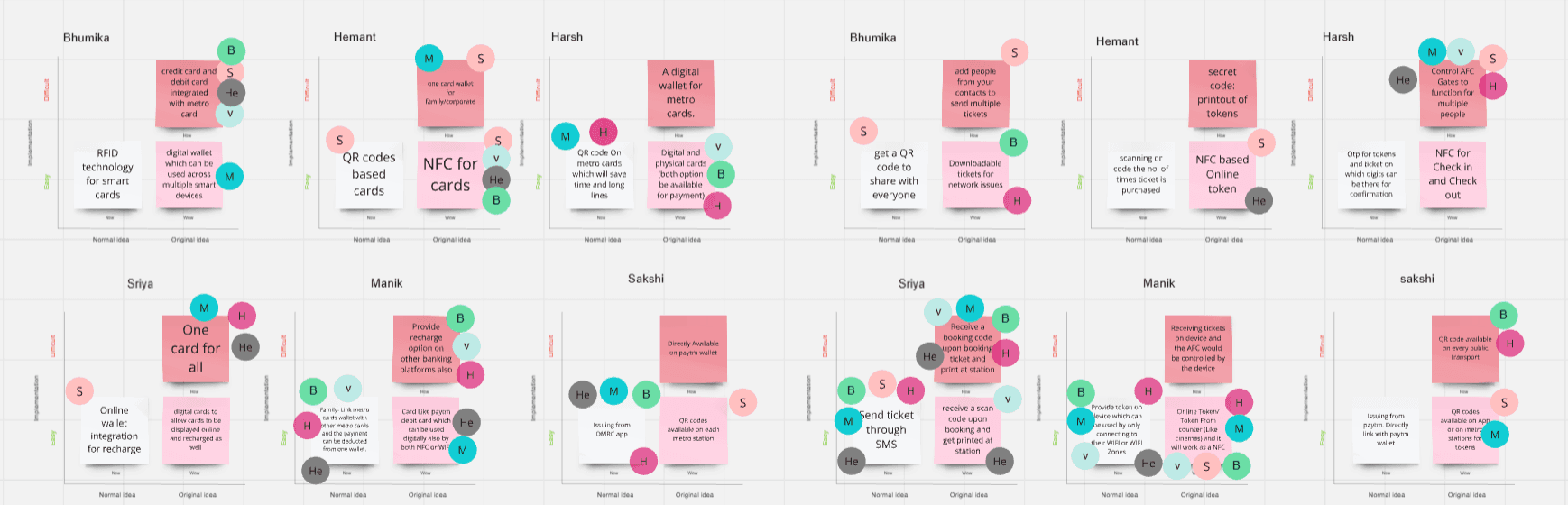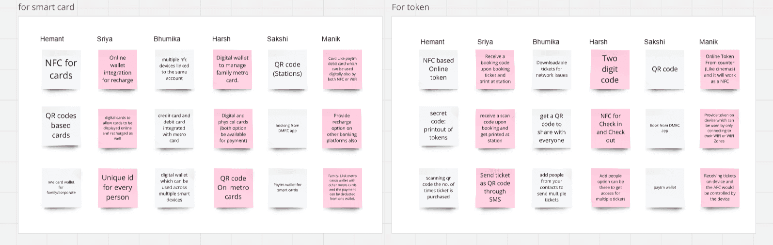To address the issues identified during our research, we participated in 2 separate ideation sessions one focusing on smart cards and the other focused on one-time travel tokens. Each session lasted for 30 - 45 minutes, where we ideated on solutions and weighed the consequences of each solution on the system that would be implemented.